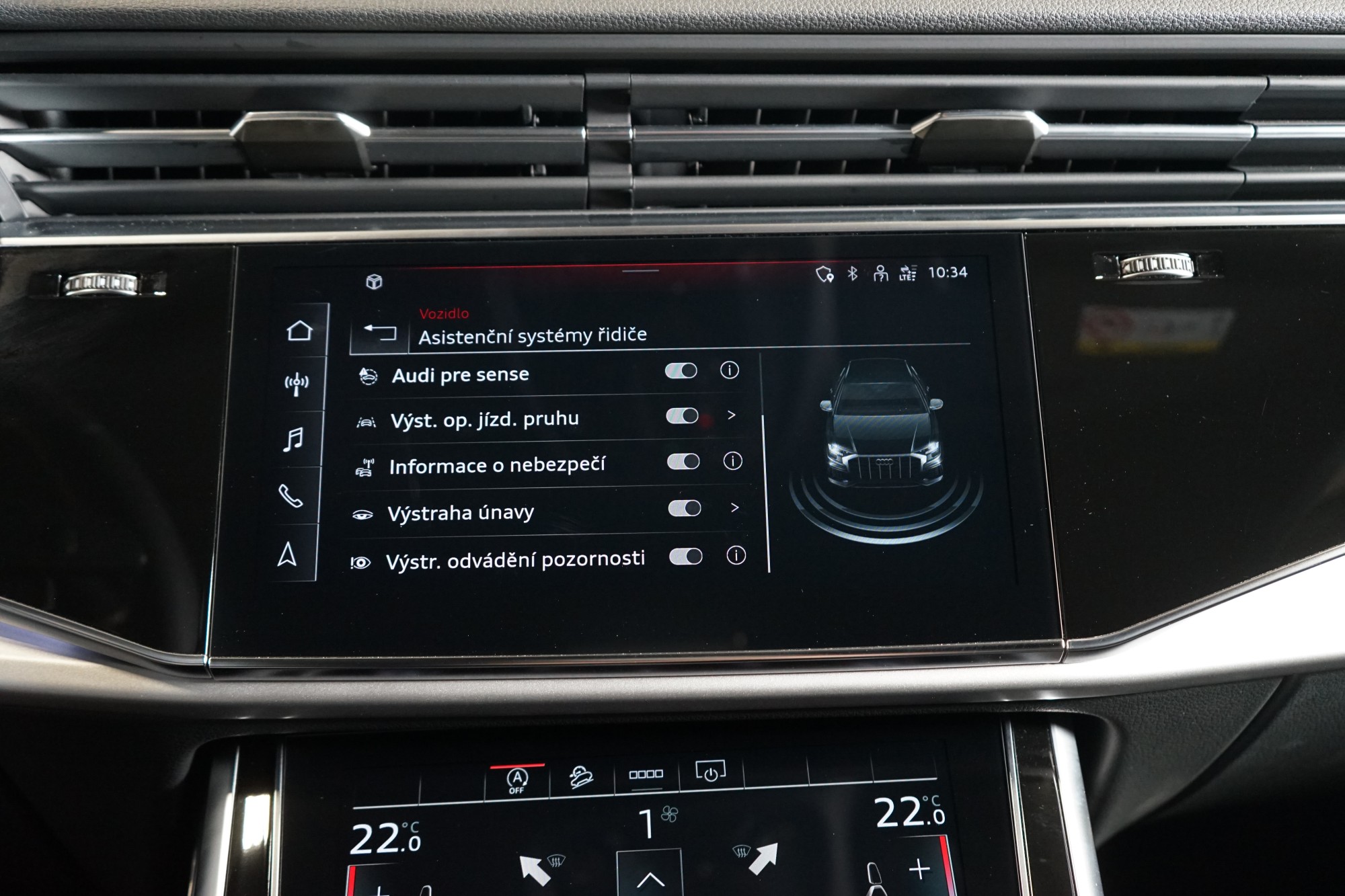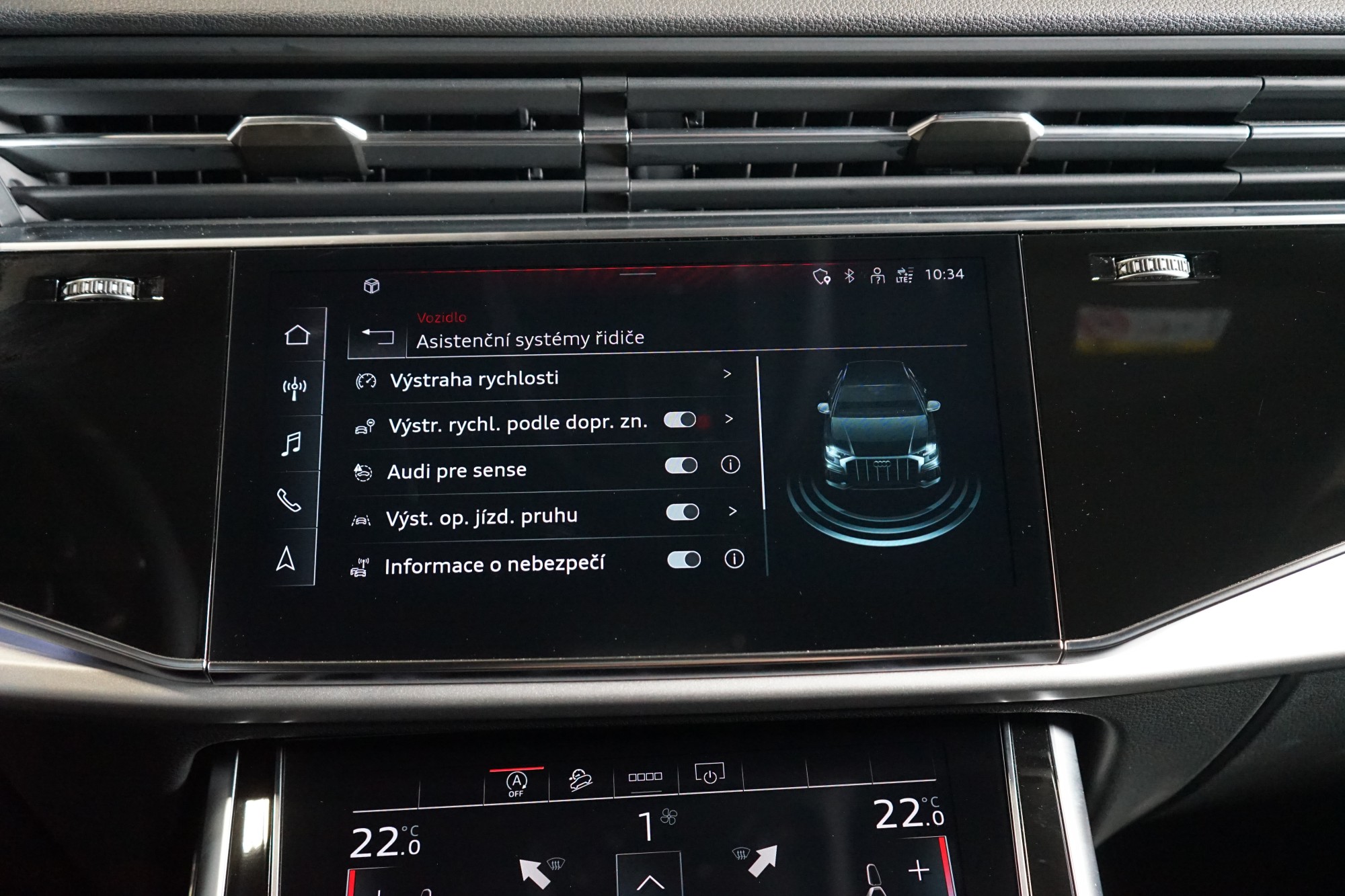 • Výstraha opuštění jízdního pruhu