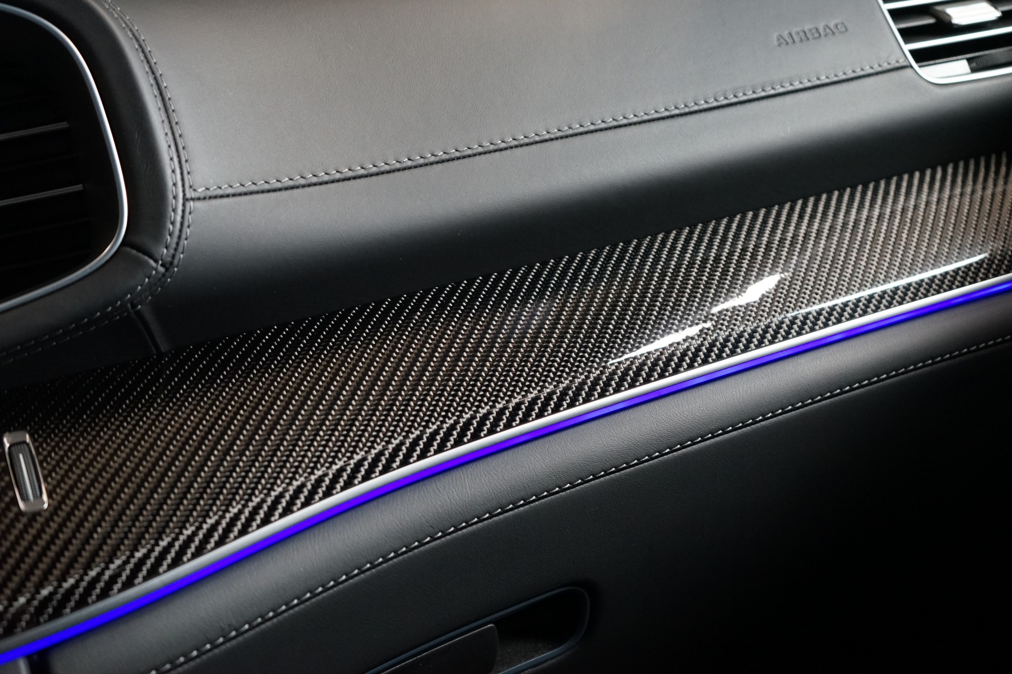 • Přístrojová deska a spodní hrana bočních oken čalouněné kůží (pravá kůže)