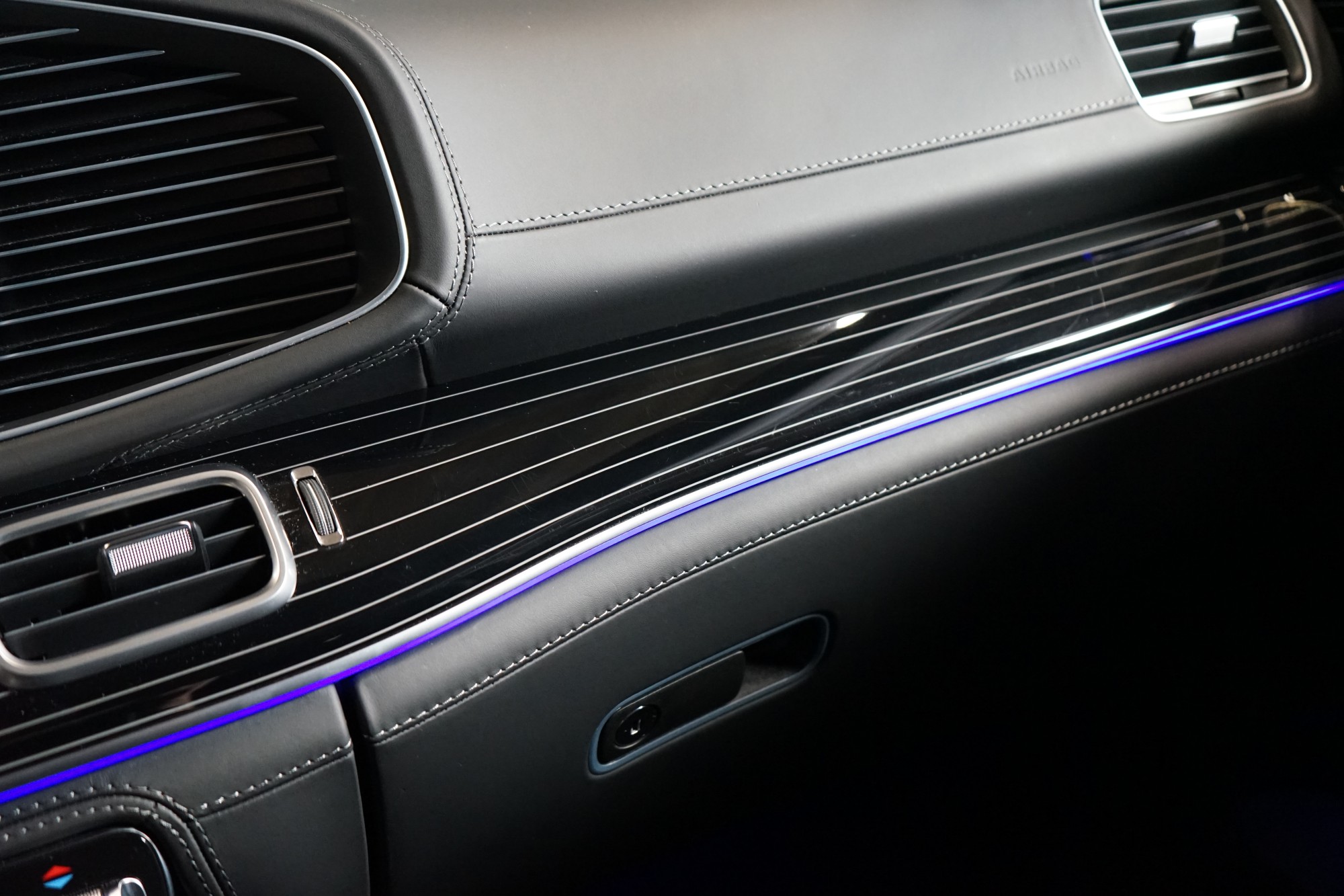 • Přístrojová deska a spodní hrana bočních oken čalouněné kůží (pravá kůže)