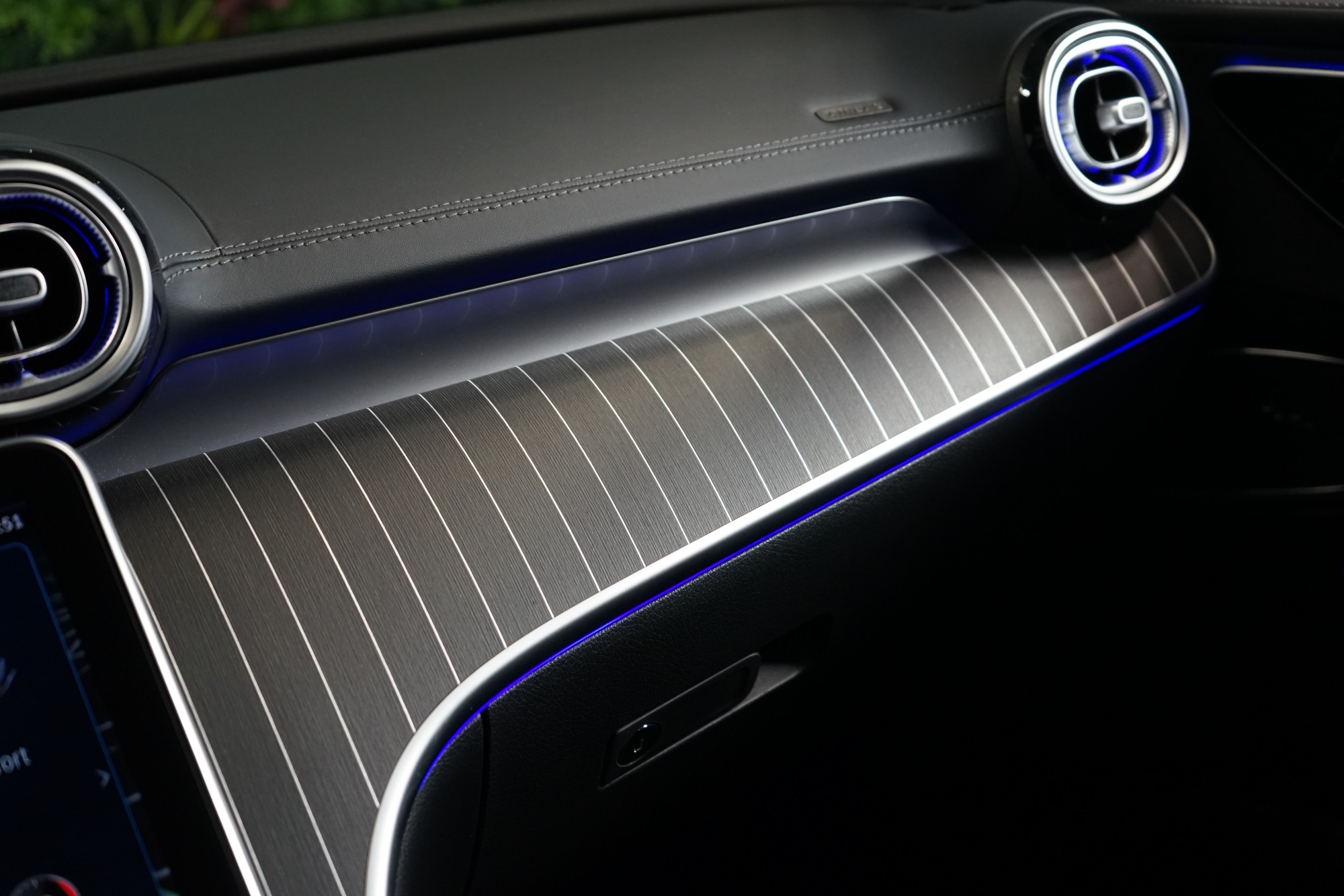 • Přístrojová deska a spodní hrana bočních oken čalouněné kůží (syntetická kůže nappa)